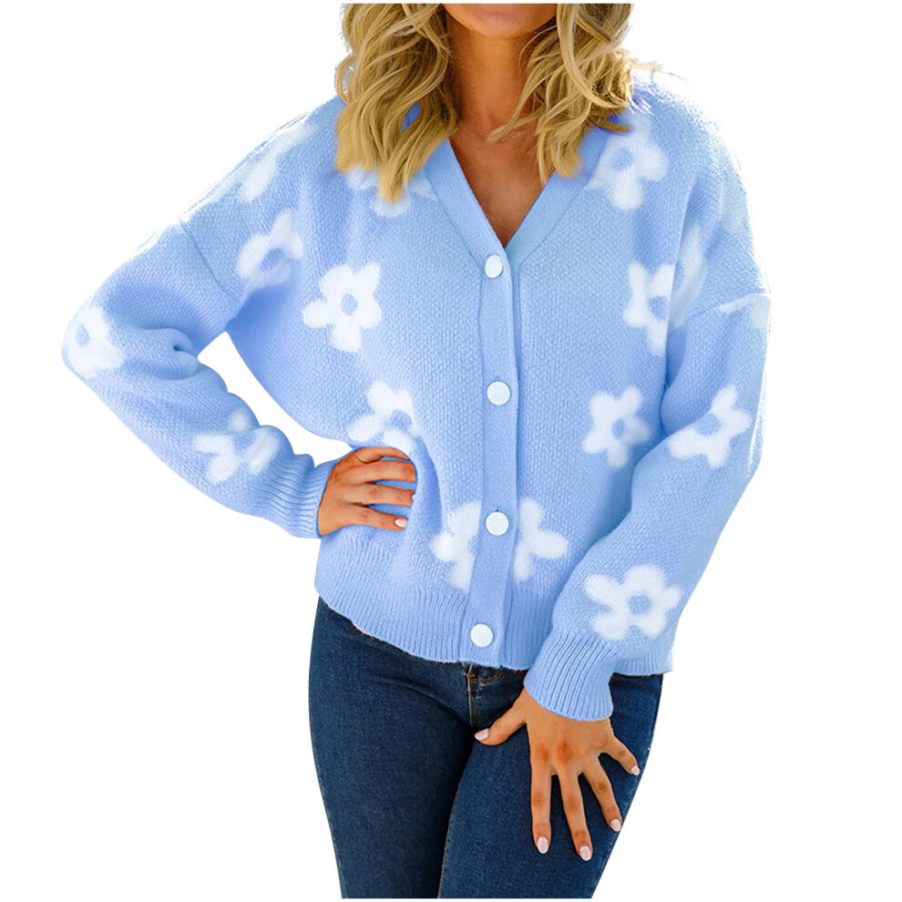 (blue, M) VEKDONE 2023 Clearance Cropped Cardigan for Women, Winter Fuzzy Open Front Sweater, Knitted Long Sleeve Crop Top, Fluffy Short Coat