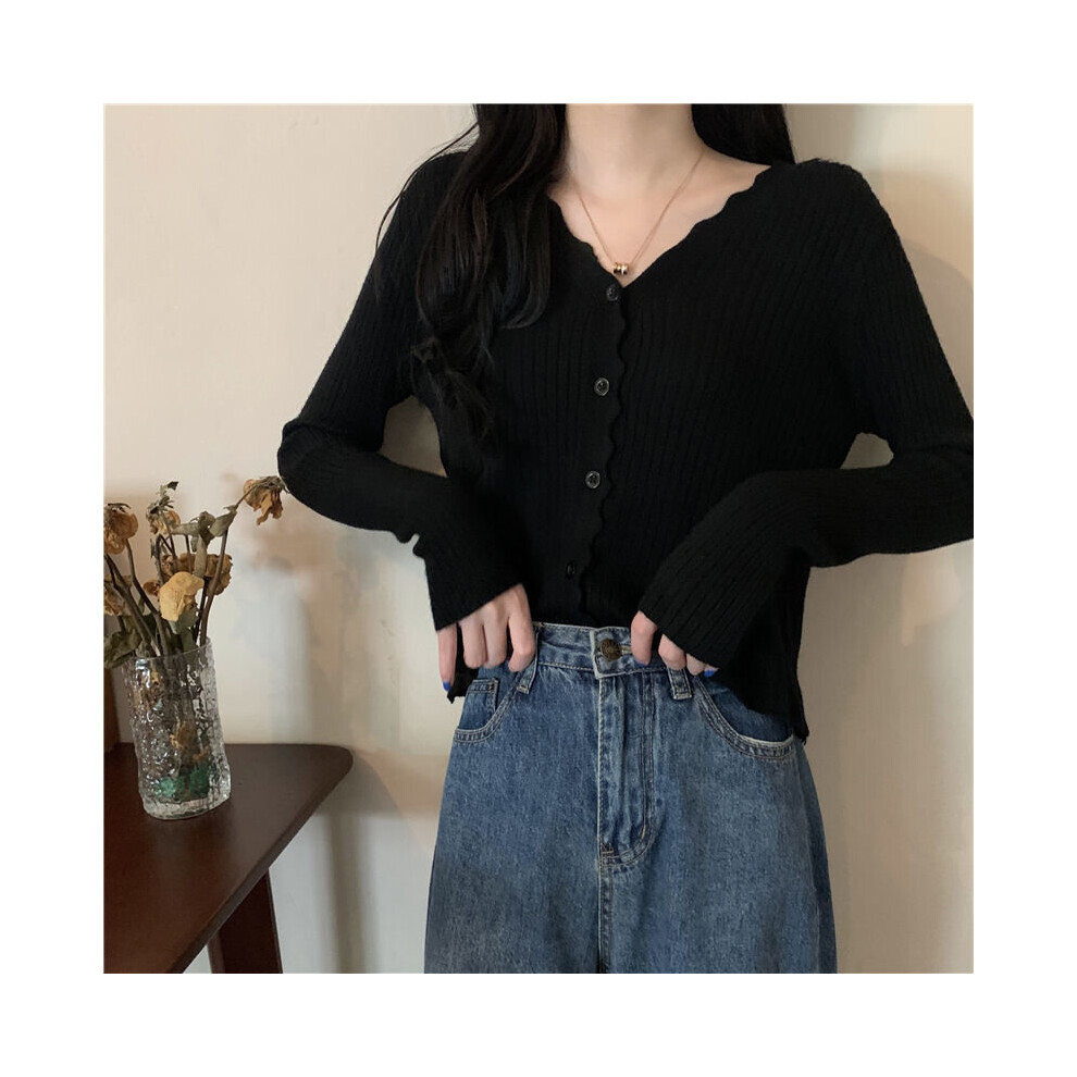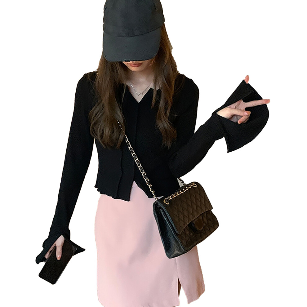 MINTLIMIT Cropped Cardigan Vintage Women 3/4 Sleeve Cardigan Summer Clothes Black L