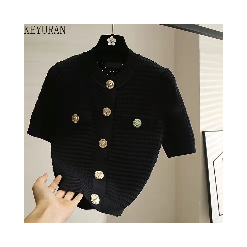 Summer Woman Cropped Cardigan Women Sweaters Button Short-Sleeved Knitted Cardigans Sweater Female Jacket Coat