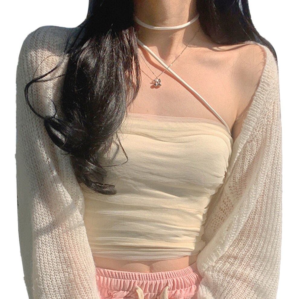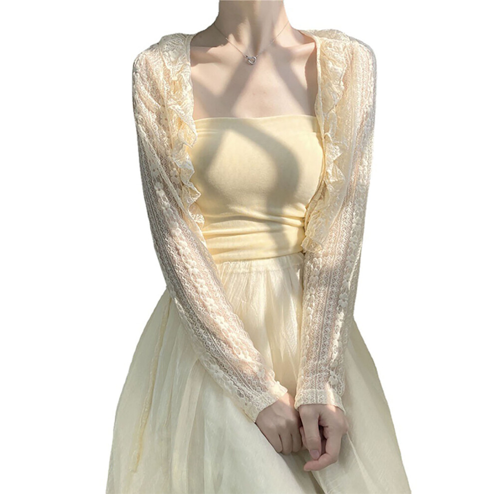 Women Puff Sleeve Bolero Open Front Summer Cropped Sheer Jackets Cardigan Women's Cardigan Beige L