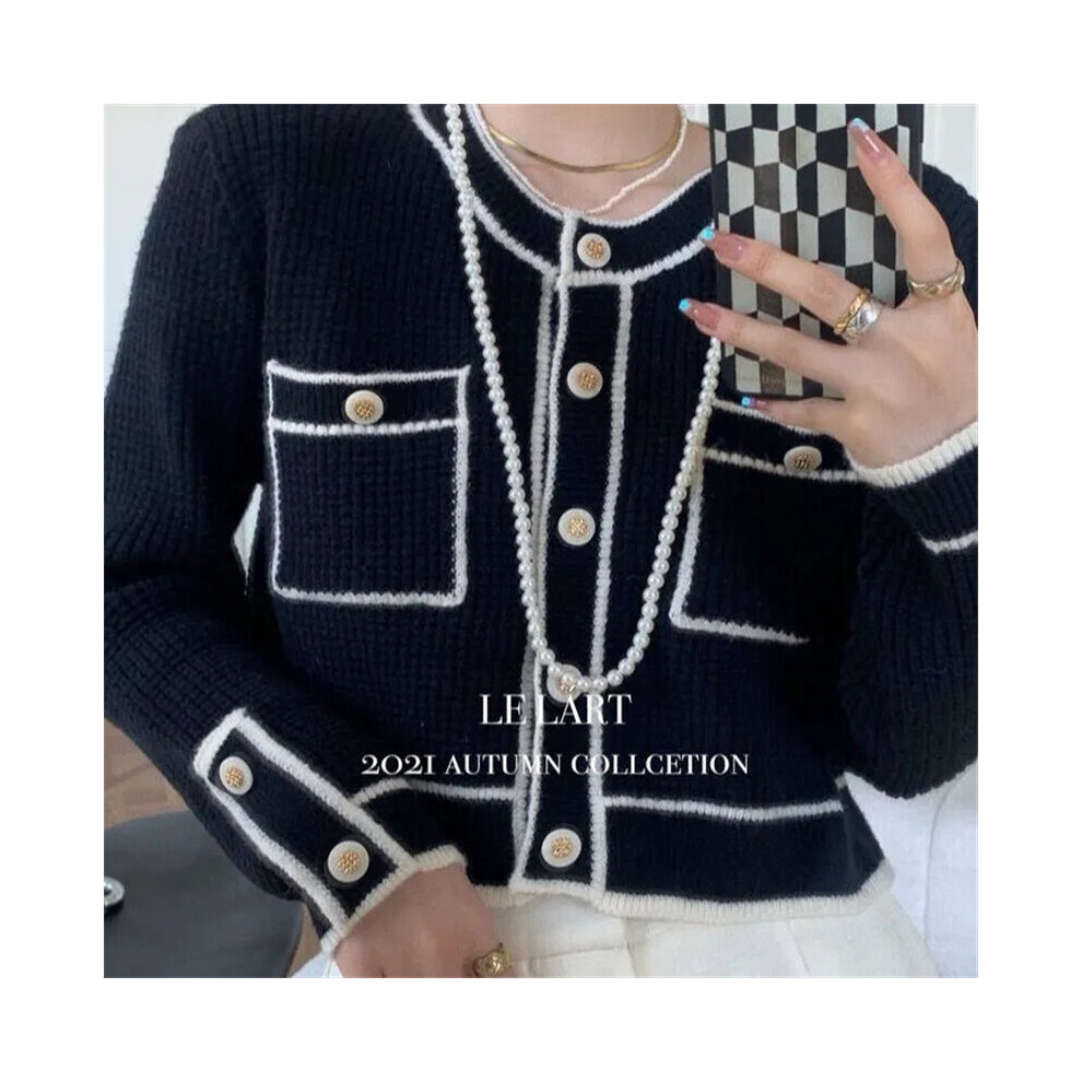 Style Cropped Cardigan Women Spring Vintage Long Sleeve Sweater Jacket Crew Neck Knitted Tops