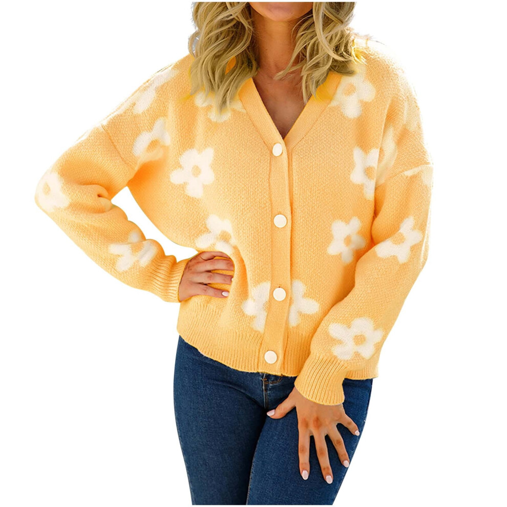 (yellow, M) VEKDONE 2023 Clearance Cropped Cardigan for Women, Winter Fuzzy Open Front Sweater, Knitted Long Sleeve Crop Top, Fluffy Short Coat