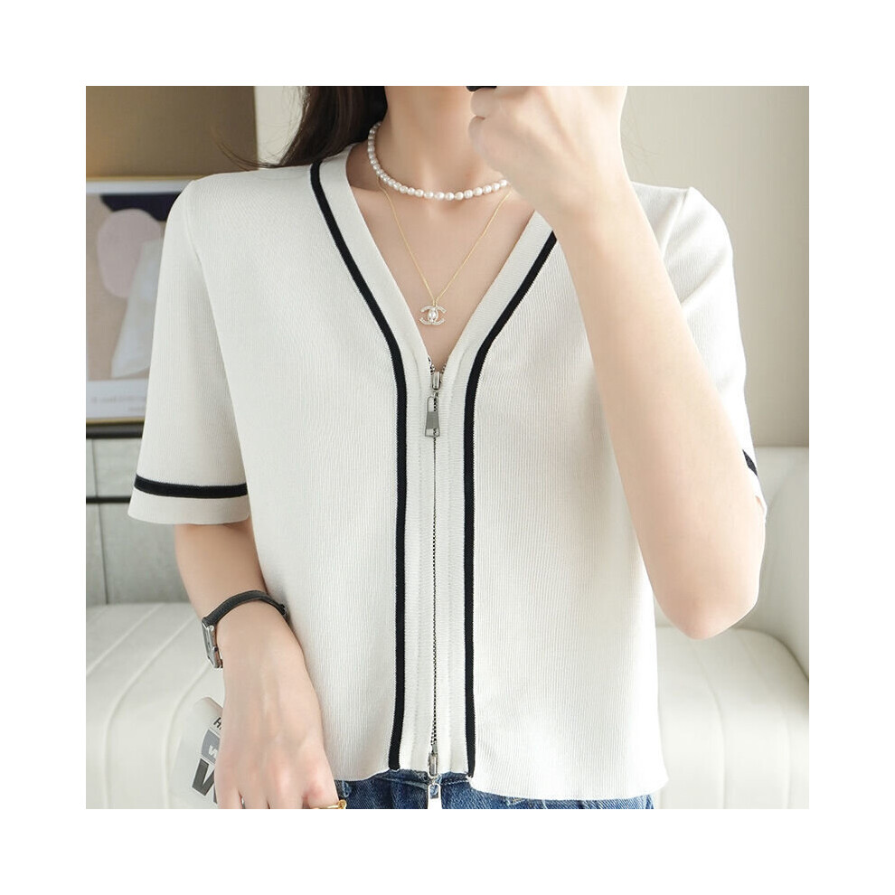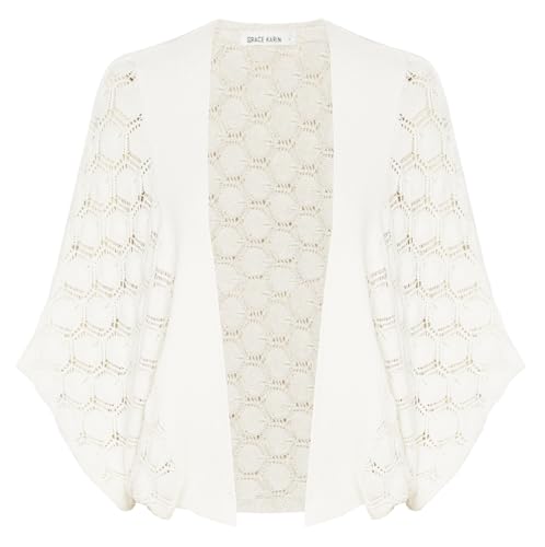 GRACE KARIN Cropped Cardigan Cream Cardigan Women Hollow Open Front Cardigan Short Sleeve Cardigan M