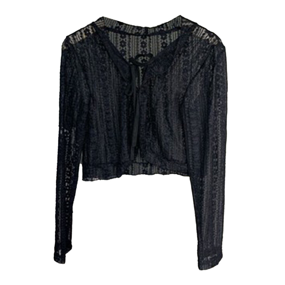 Women Puff Sleeve Bolero Open Front Summer Cropped Sheer Jackets Cardigan Women's Cardigan Black L