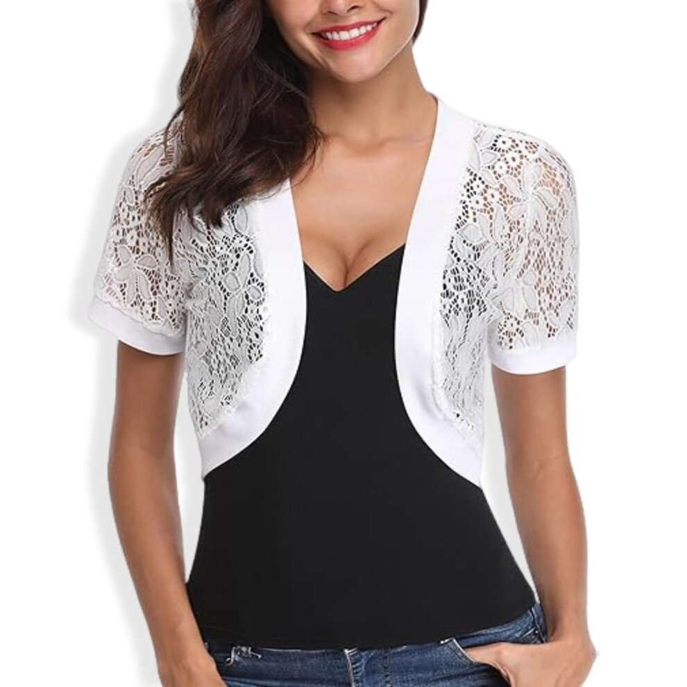 Cropped Cardigan For Women, Open Front Short Sleeve Lightweight Bolero Shrug With Floral Lace Design, Breathable Fabric Skin-Friendly Crochet Lace