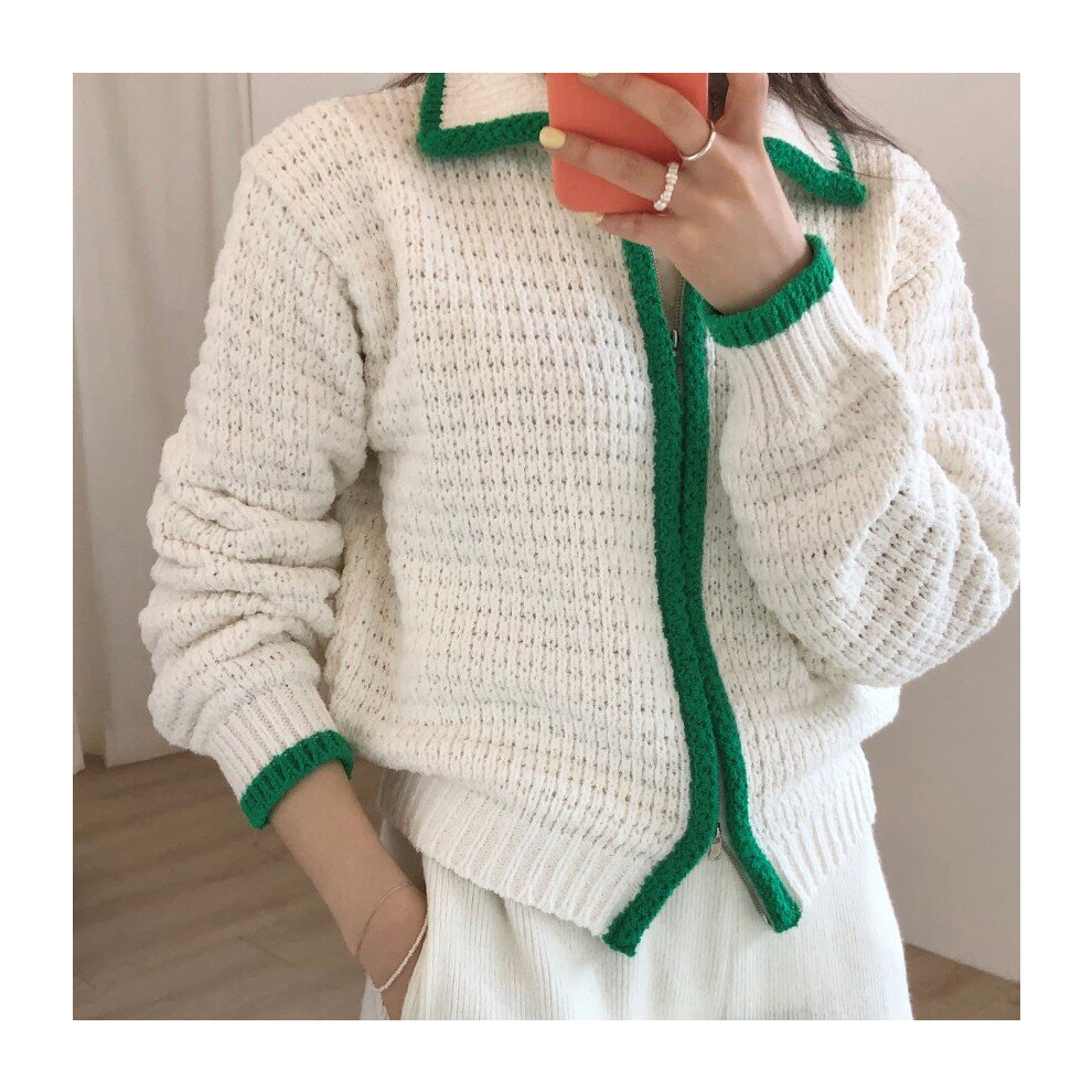 Autumn Solid Vintage Cropped Cardigan Women Y2k Tops Clothes Teens Casual All Match Zipper Jackets Femme