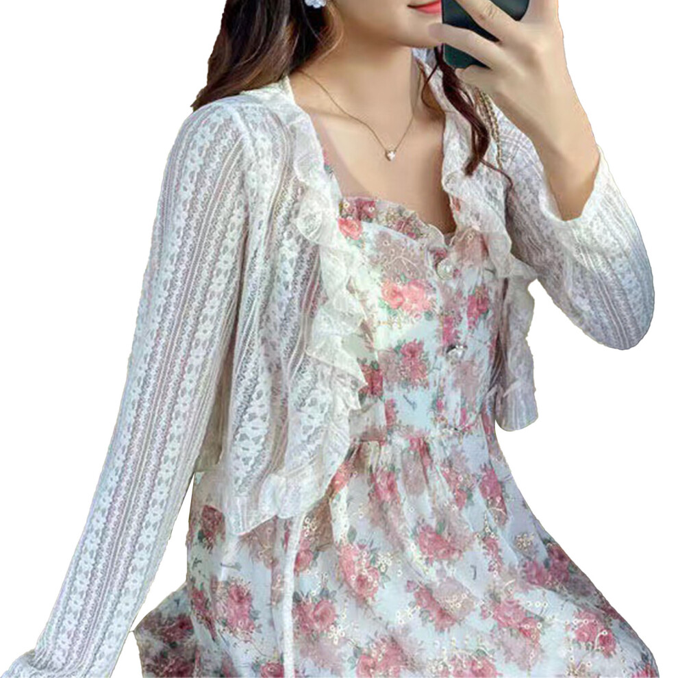 Women Puff Sleeve Bolero Open Front Summer Cropped Sheer Jackets Cardigan Women's Cardigan White L
