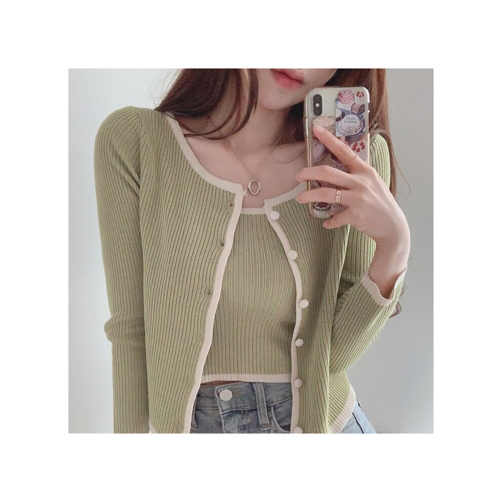 Pink Cropped Cardigan Women Thin Coat + Sexy Camisole Tank Tops Spring Style Gentle Two Sets Sweaters Knitwear