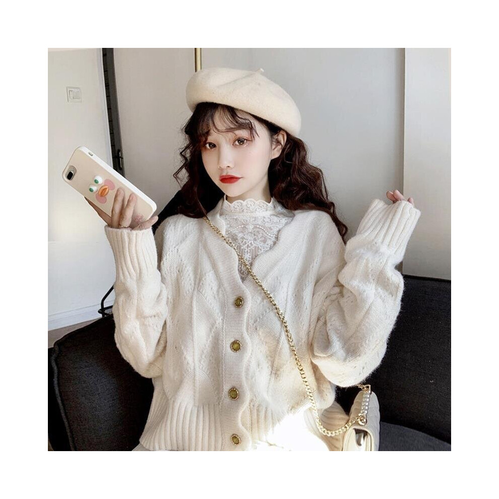 Cropped Cardigan Sweaters Women Lovely Solid Ladies Knitwear Daily Girls Fall Clothing
