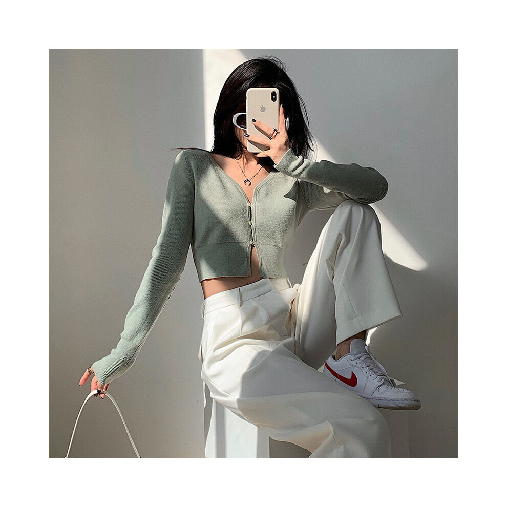Cropped Cardigan Women V-neck Solid Spring Sexy Slim 4 Colors Style All-match College Basic Ladies