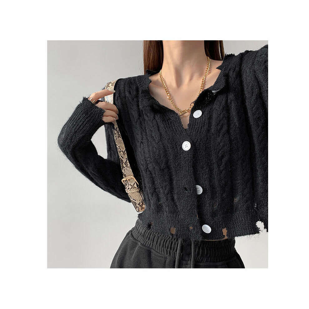 Spring Thin Long-sleeved Solid Cropped Cardigan Women Knitted Retro Sexy Showing Belly Casual Daily Tops