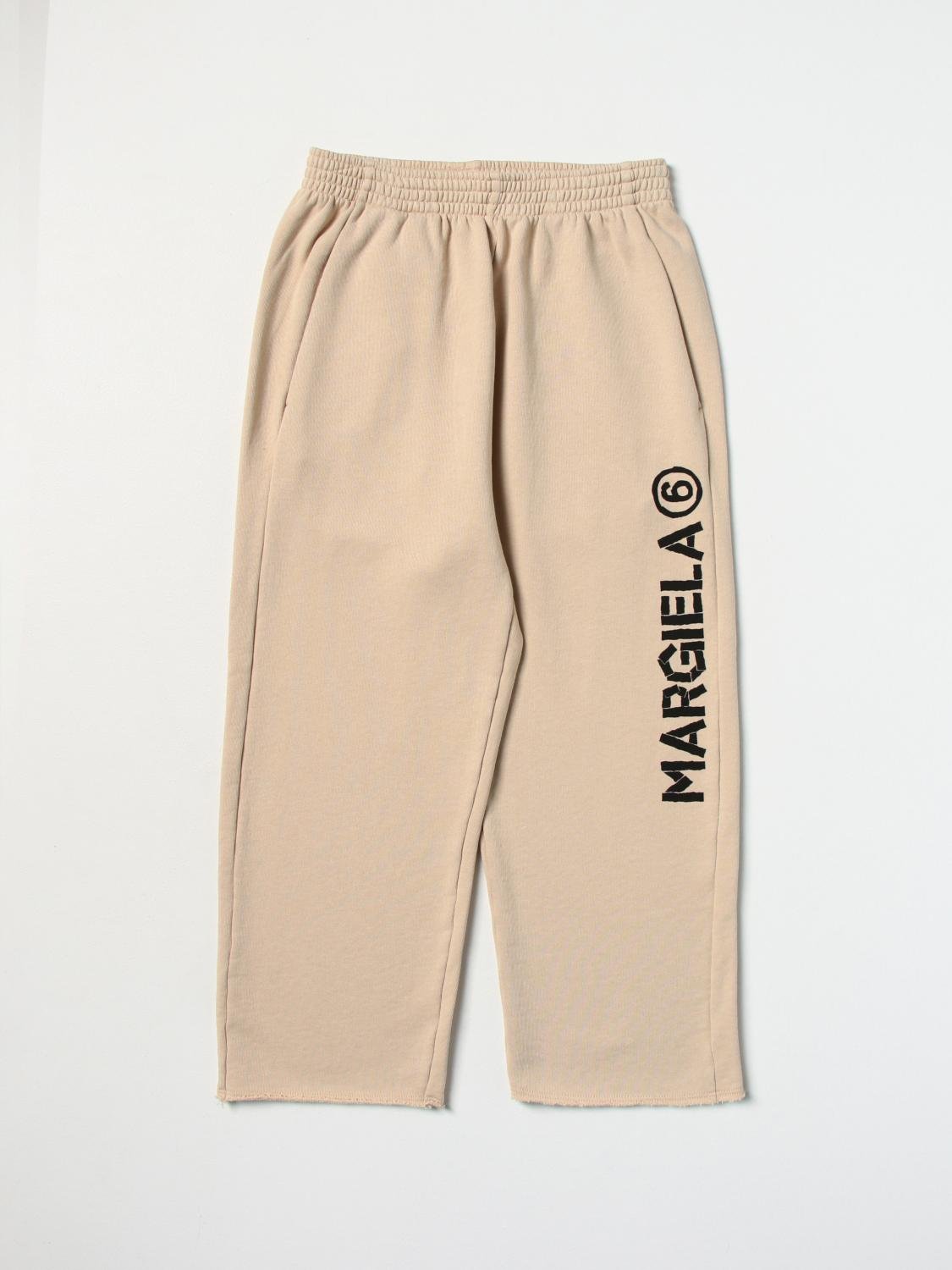 Mm6 Maison Margiela Kids Unisex Cropped Joggers Relaxed Fit - Tan Cotton - Size 8Y