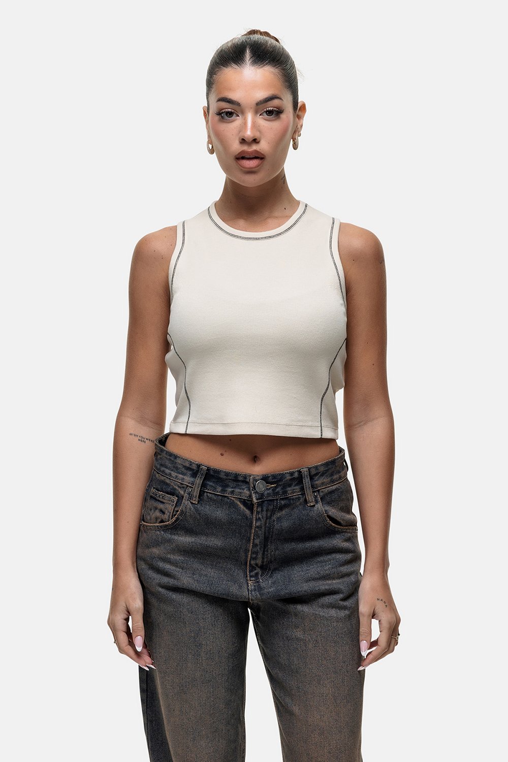 Good For Nothing Womens Cream Stitch Detail Cropped Vest Top - Size X-Small