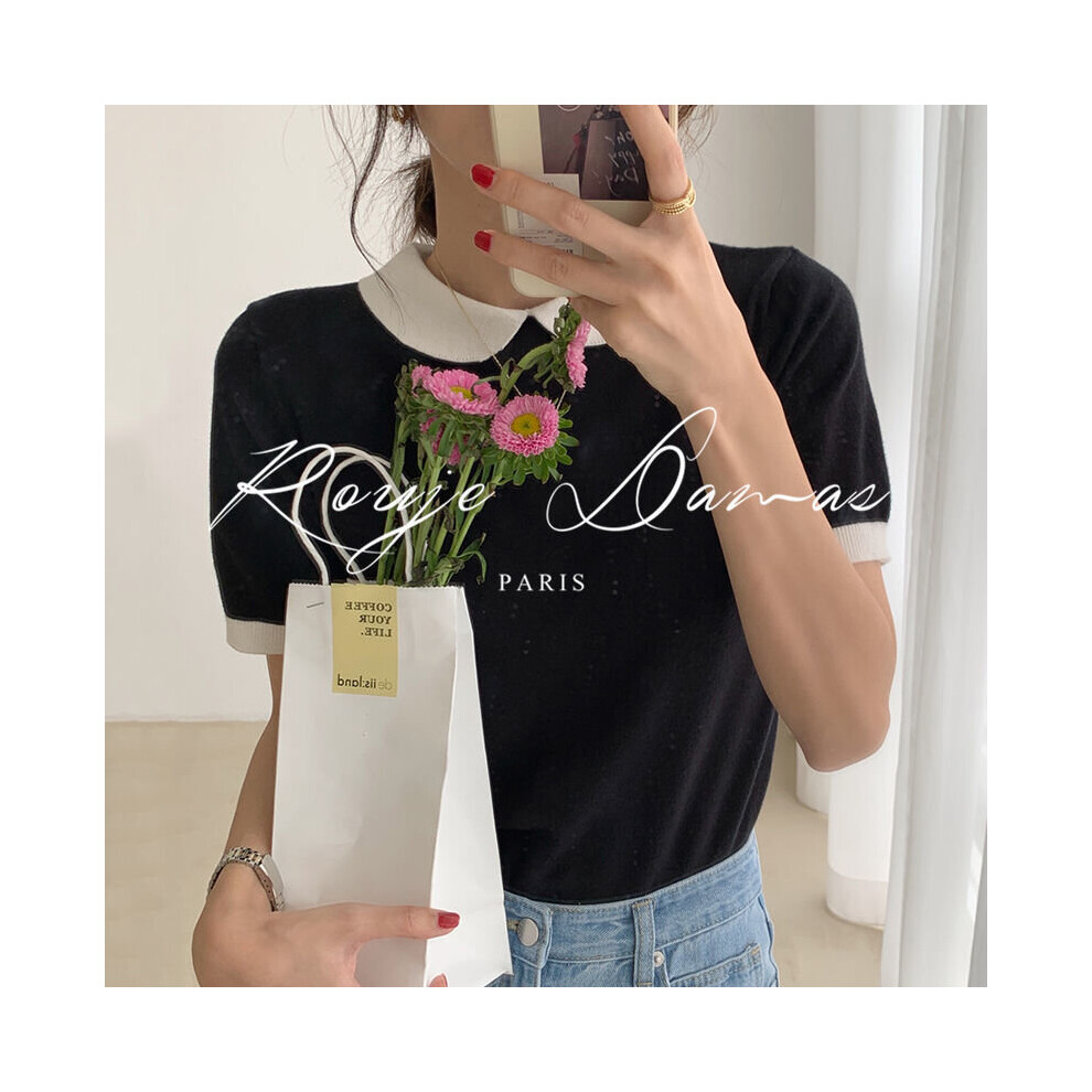 Summer Women Lapel Short Sleeve Knit Cropped Top Women's Clothing Back Button Thin Sweater X312
