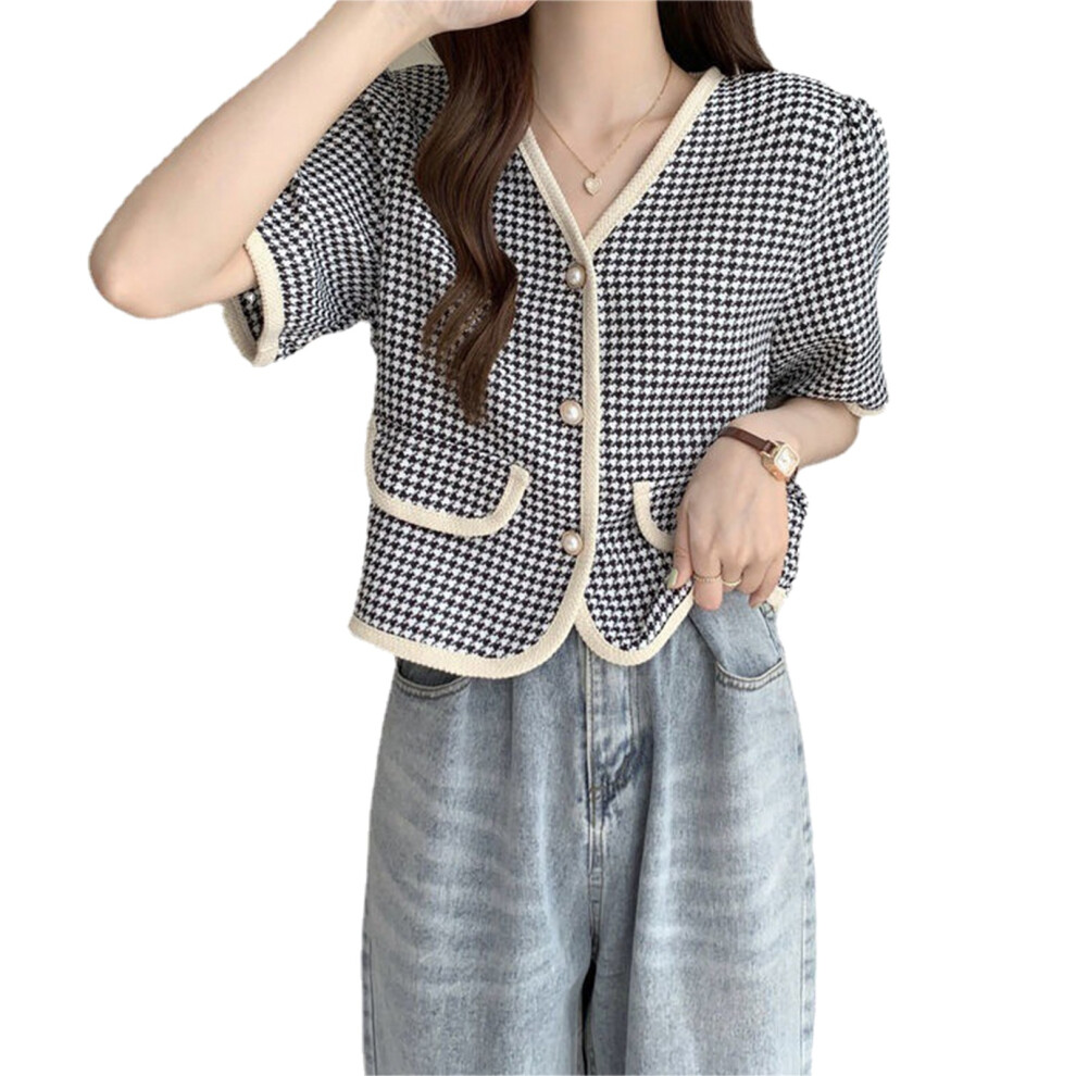 French Style Knitted Sweater Women's Cropped Top V Neck Short Sleeve Lightweight Breathable Material Elegant Curve Fitting