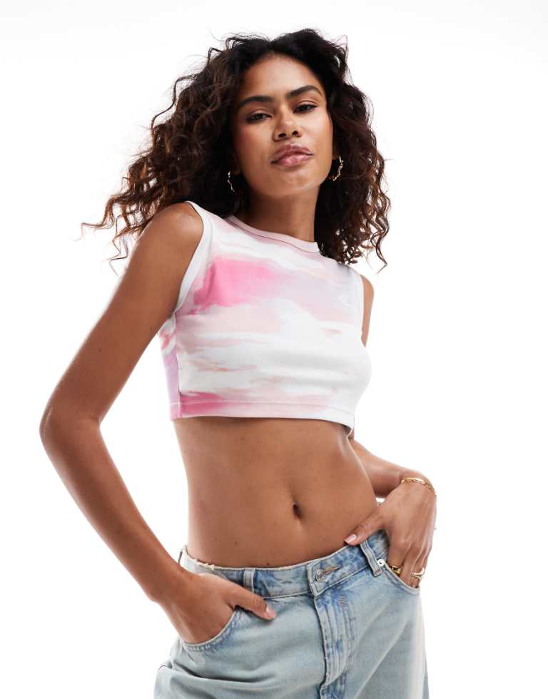 Calvin Klein Jeans Womens cropped tank top in multi print - Pink & White - Size X-Large