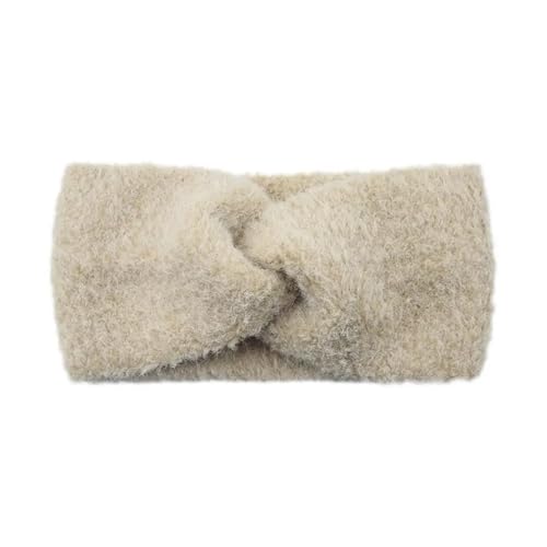 Solid Color Knit Headband Plush Soft Elastic Cross Hair Band Wool Wide Edge Bands For Washing Face Makeup(Khaki)