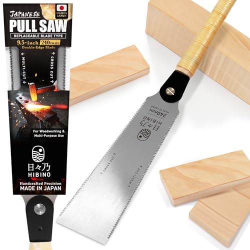 HIBINO Japanese Pull Saw 240mm (9.5") Ryoba | Multi-Cut & Cross-Cut Teeth | Lightweight Double-Edge Blade for Dovetails, Tenons & Woodworking | Replaceable Blade | Made in Japan