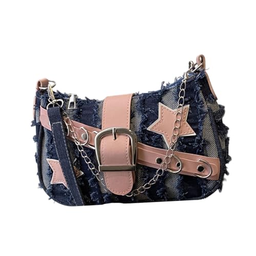 [YIGZYCN] Chain Strap Aesthetic Underarm Star Pattern Shoulder Cross Body Bag for Trendy Women Handbag Edge Party Accessories, star dark blue