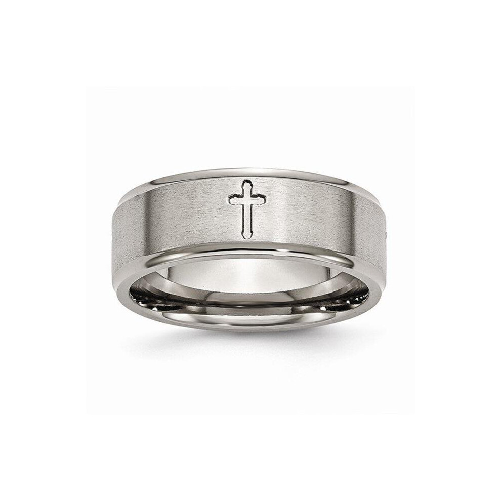 8 mm Titanium Ridged Edge Cross Brushed & Polished Band - Size 8.5