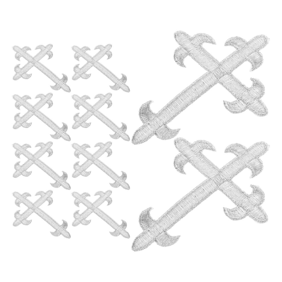 24Pcs Silver Embroidered Cross Patches for Clothing Iron on Applique