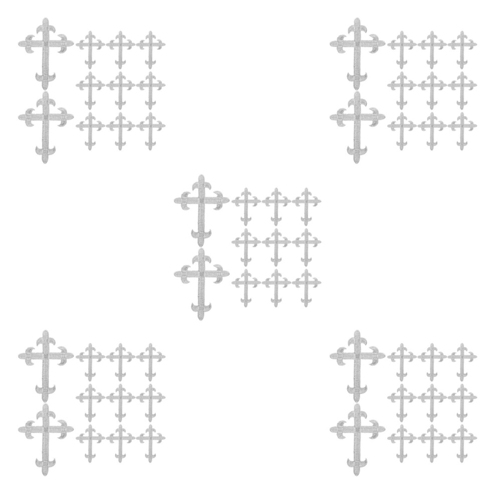 60Pcs Silver Embroidered Cross Patches Iron on for Clothing Bags Hats