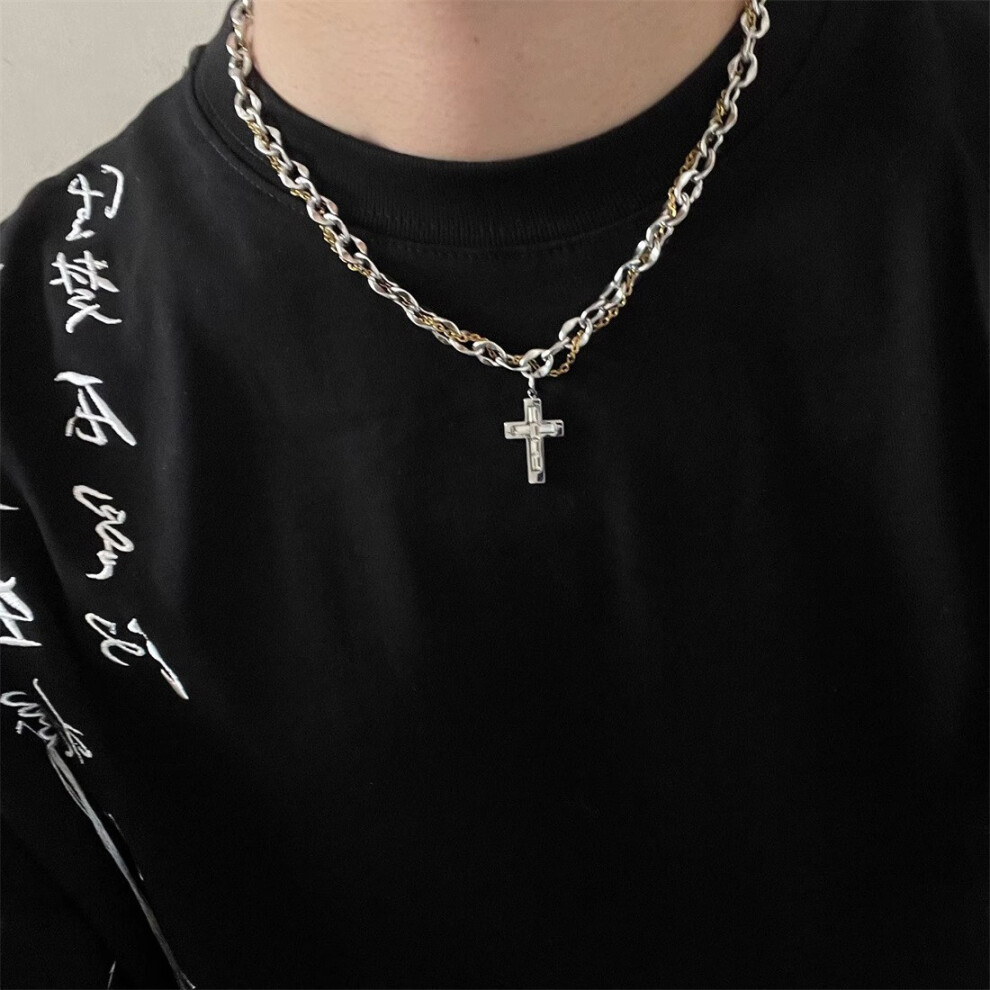 (L257-A(Two-color cross necklace)) The men's necklace is a simple and versatile accessory. The women's sweater chain is a new, fashionable and persona