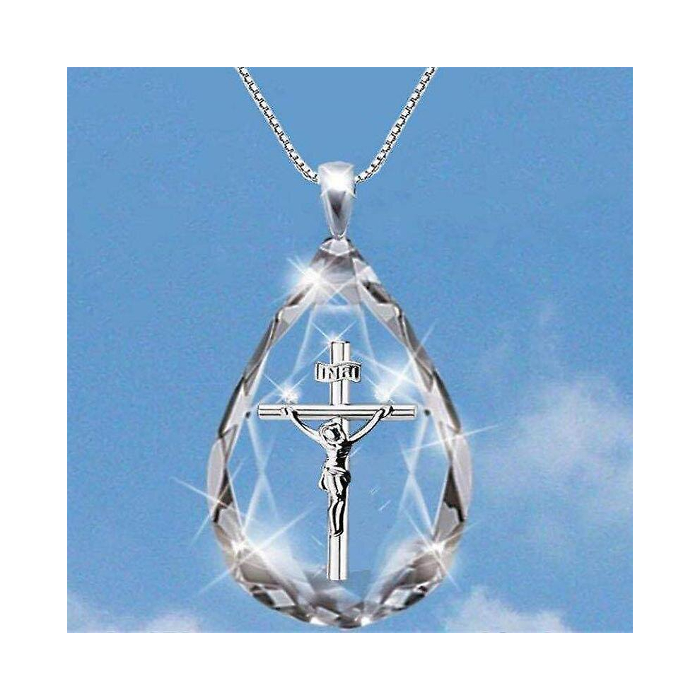 Jesus Christ Cross Pendant Necklace, Alloy Bead Long Chain-a