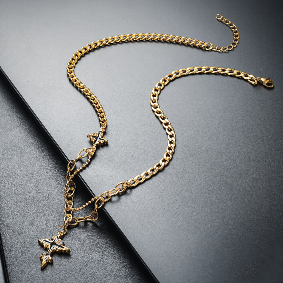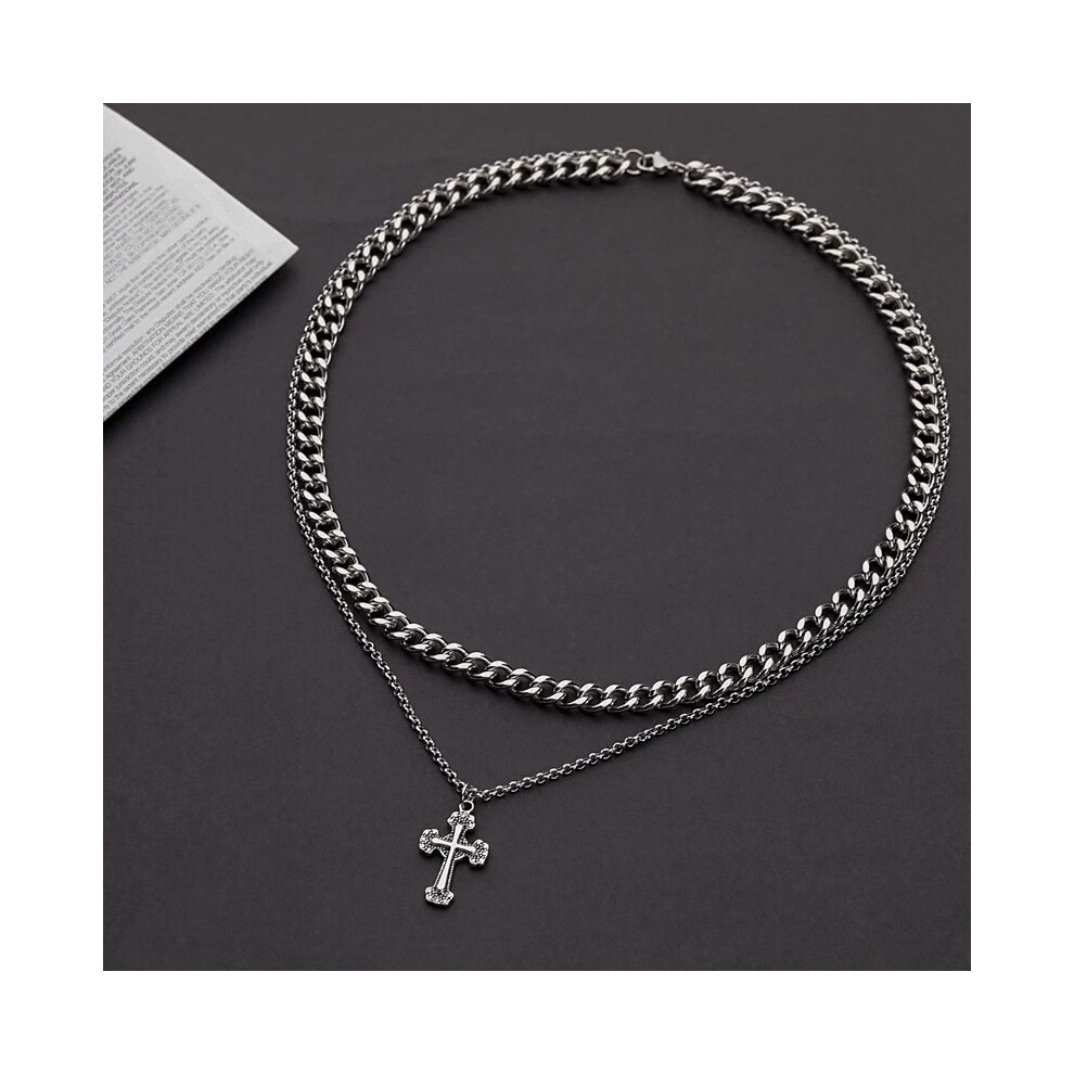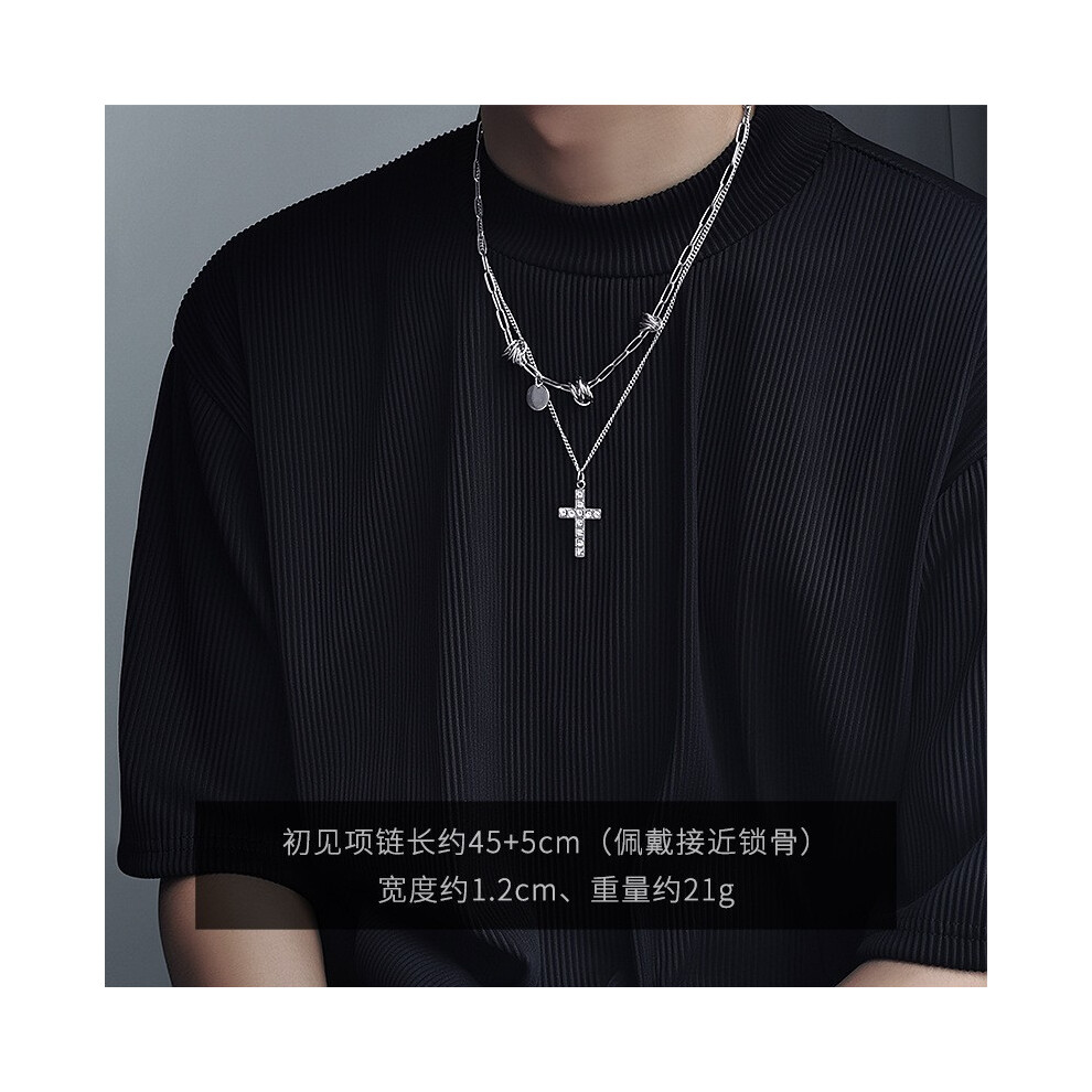 (L261-A(Cross Double-layer Cuban chain)) The men's necklace is a simple and versatile accessory. The women's sweater chain is a new, fashionable and p