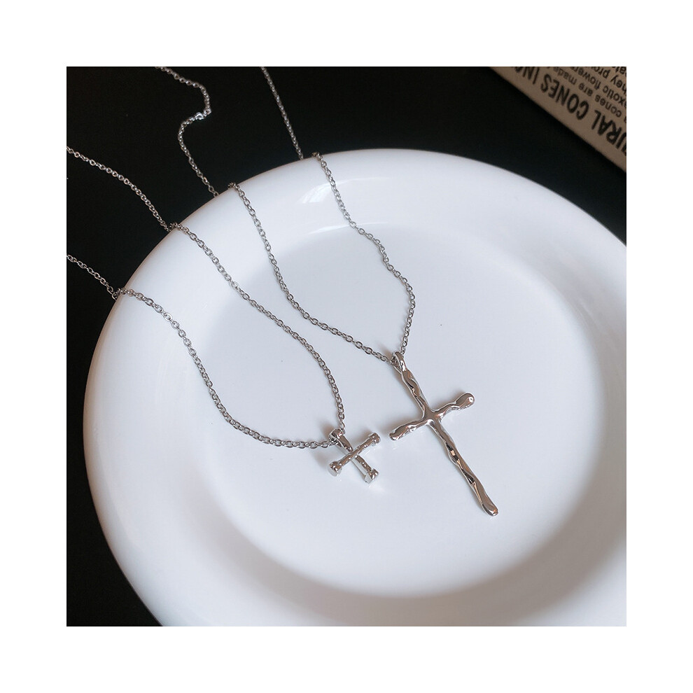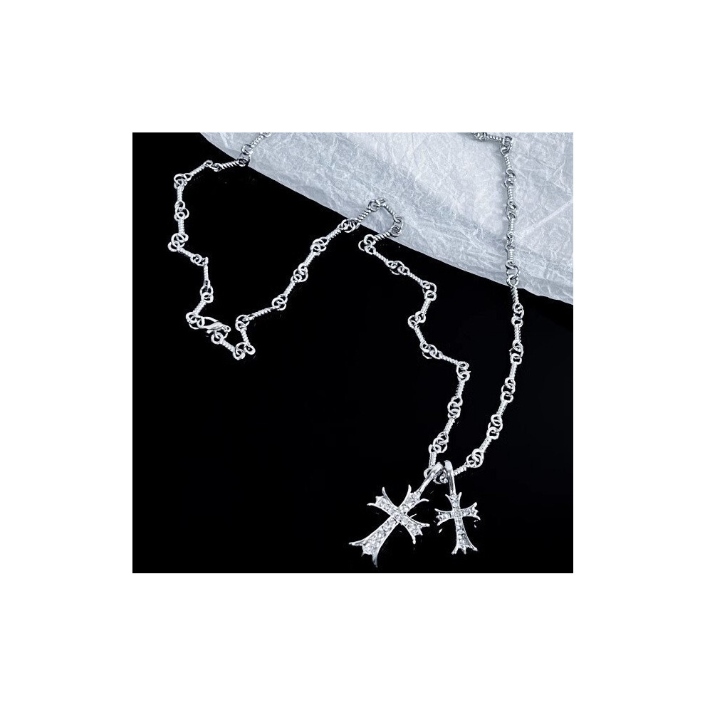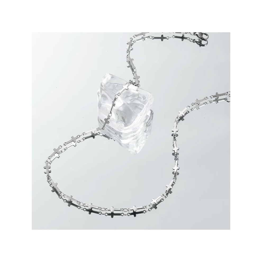 (8361-A silver cross full of diamonds) Silver titanium steel necklace for women, ins style, niche and versatile, popular collarbone chain