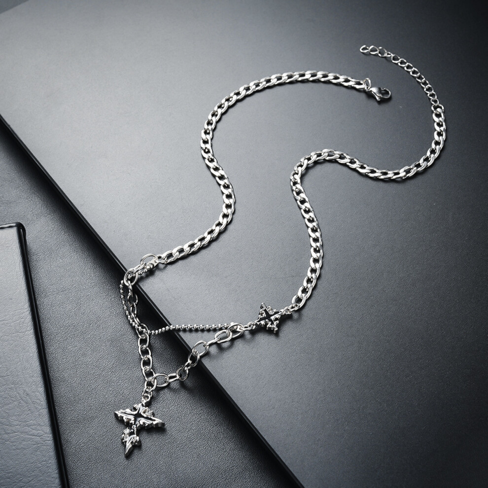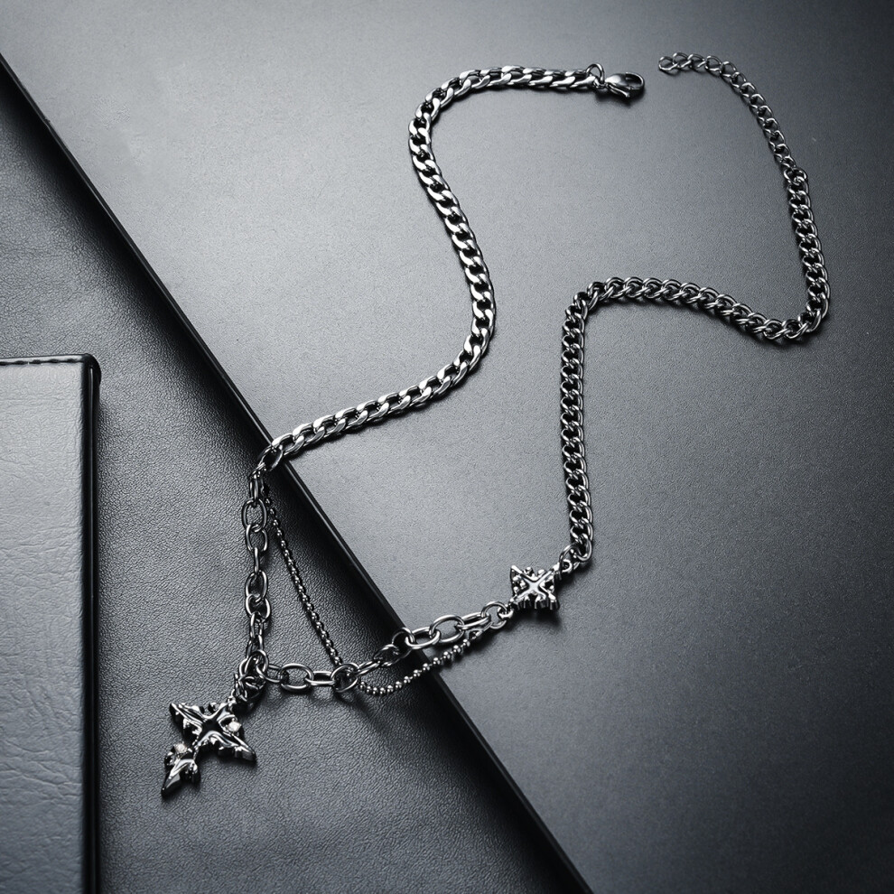 (L236-A(Double Cross Necklace)) The men's necklace is a simple and versatile accessory. The women's sweater chain is a new, fashionable and personaliz
