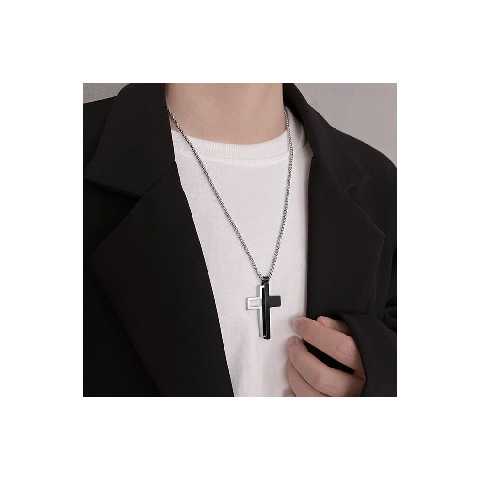 (L182-ABlack diamond cross necklace) The men's necklace is a simple and versatile accessory. The women's sweater chain is a new, fashionable and perso