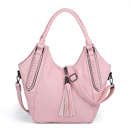 AFKOMST Hobo Bags for Women, Large Top Handle Tote Bags Purse, Soft Leather Shoulder Bags Ladies Synthetic Handbag Crossbody Bags with Tassel, Adjustable Strap(Pink)