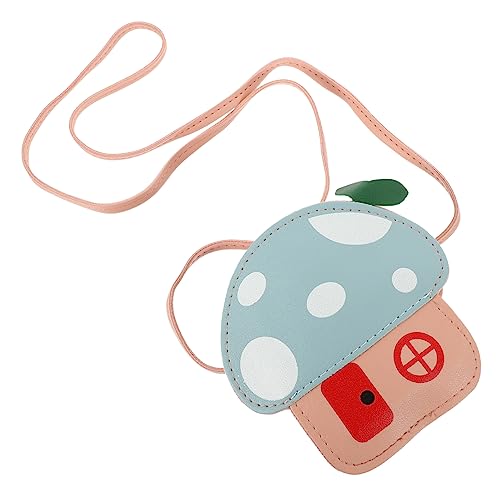 MOKKHNB Kids Mushroom Bag Pu Cartoon Coin Purse Fashionable Pink Crossbody Purse for Girls Storage Coins and Snacks School Bag Random Color