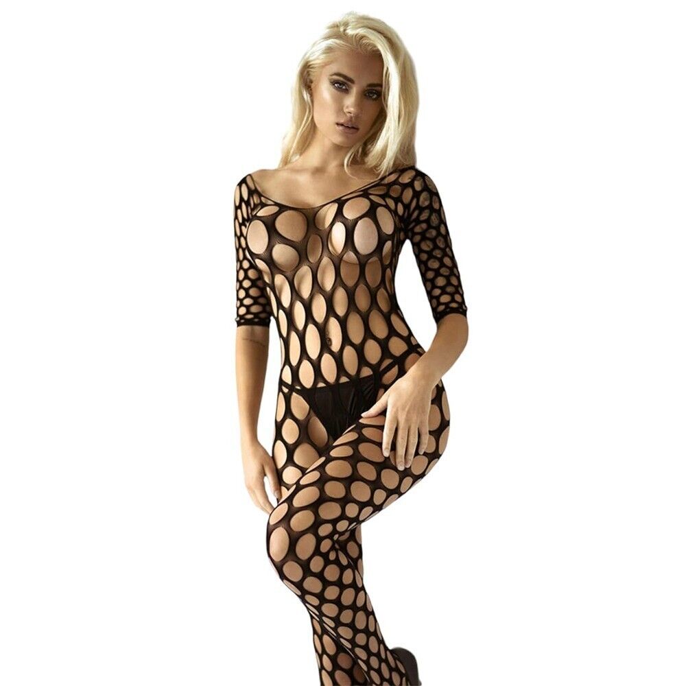 UK6-22 Fishnet Bodystocking Long Sleeve Body Stocking Crotchless Lingerie Plus
