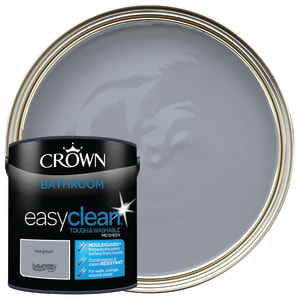 Crown Easyclean Mid Sheen Emulsion Bathroom Paint - Soft Steel - 2.5L