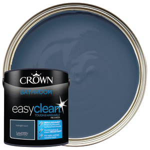 Crown Easyclean Mid Sheen Emulsion Bathroom Paint - Midnight Navy - 2.5L