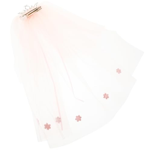 FRCOLOR Kids Crown Veil with Hair Comb Pink Four-layer Tulle Dot Hair Accessories for Cosplay Festival Birthday Photography