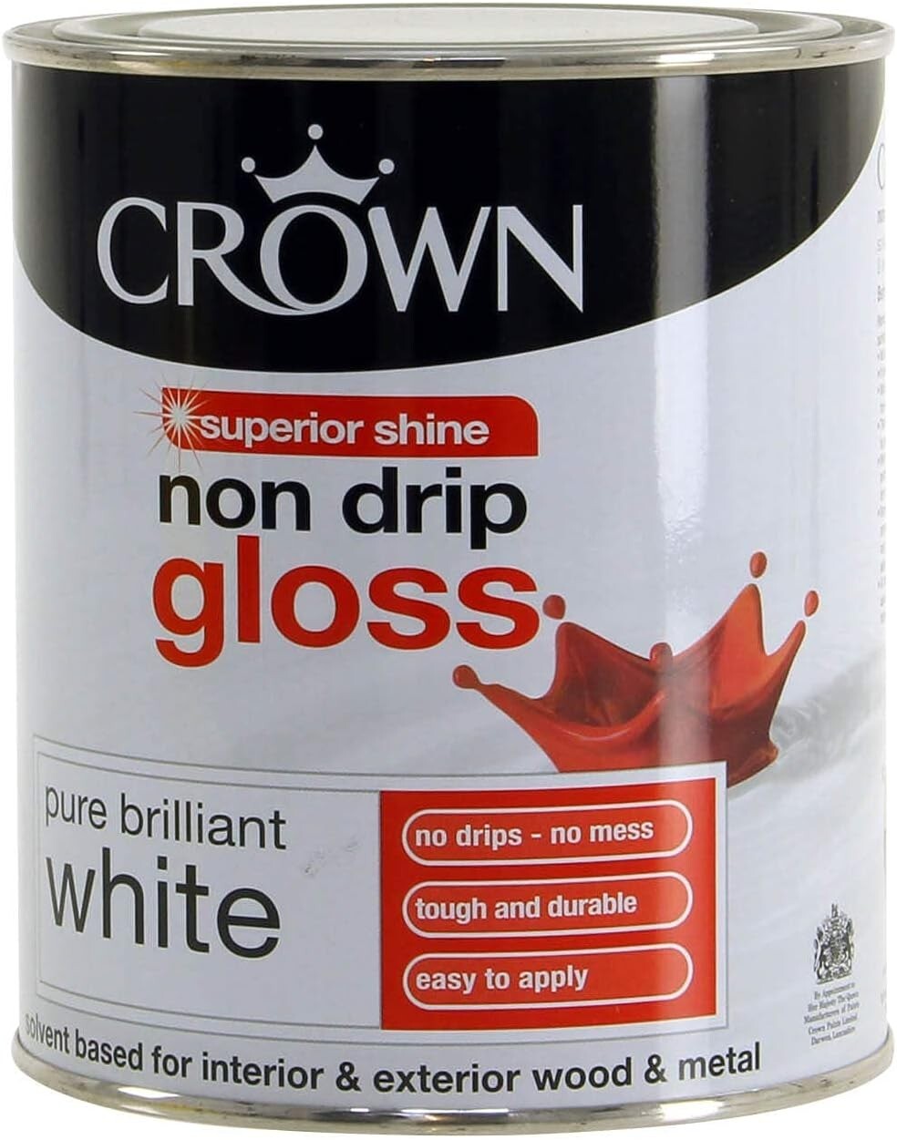 Crown Non Drip Gloss Paint - 750ml, Brilliant White