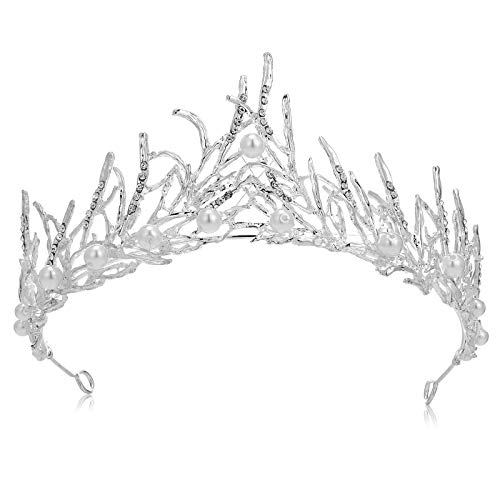 Makone Queen Crowns and Tiaras for Women, Queen Princess Vintage Tiaras with Pearl, Girls Adult Bridal Hair Accessories Gifts for Christmas Halloween, Birthday Party, Wedding Prom, Pageant - Silver