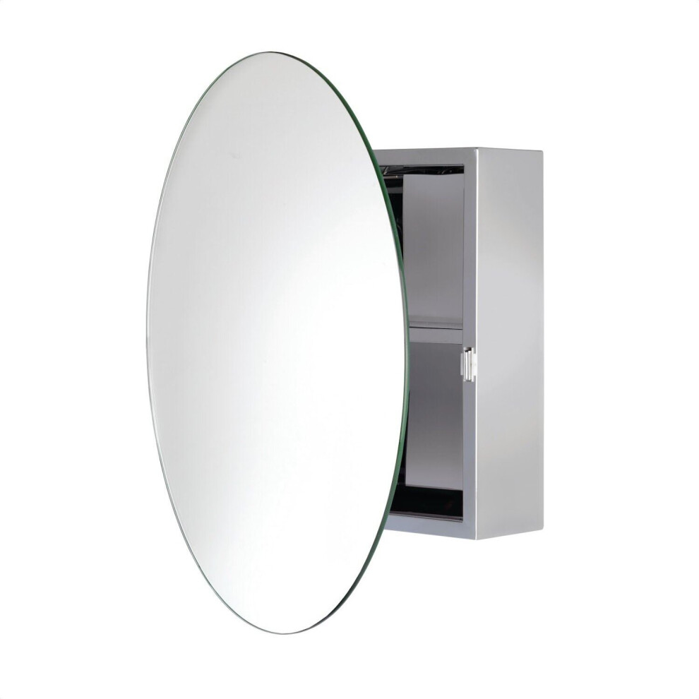 Croydex Severn Circular Door Bathroom Mirror Cabinet Stainless Steel WC836005
