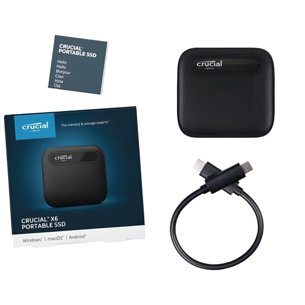 Crucial X6 Portable SSD - High-Speed USB-C External Solid State Drive (500GB, 1TB, 2TB, 4TB) Up to 540MB/s, USB 3.2 Compatible