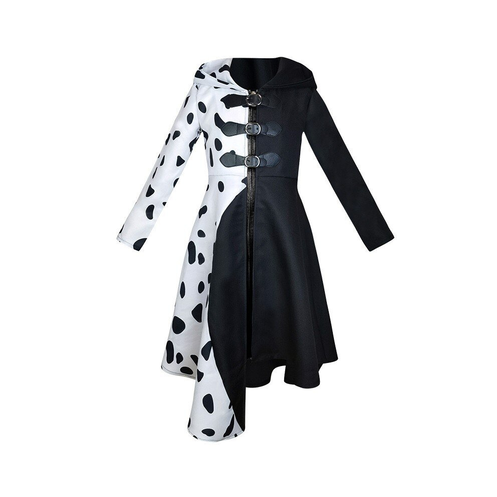 (Child 130cm/51.18in) Cruella Emma Deville Halloween Cosplay Dress Costume Party Event Coat Adult Kids