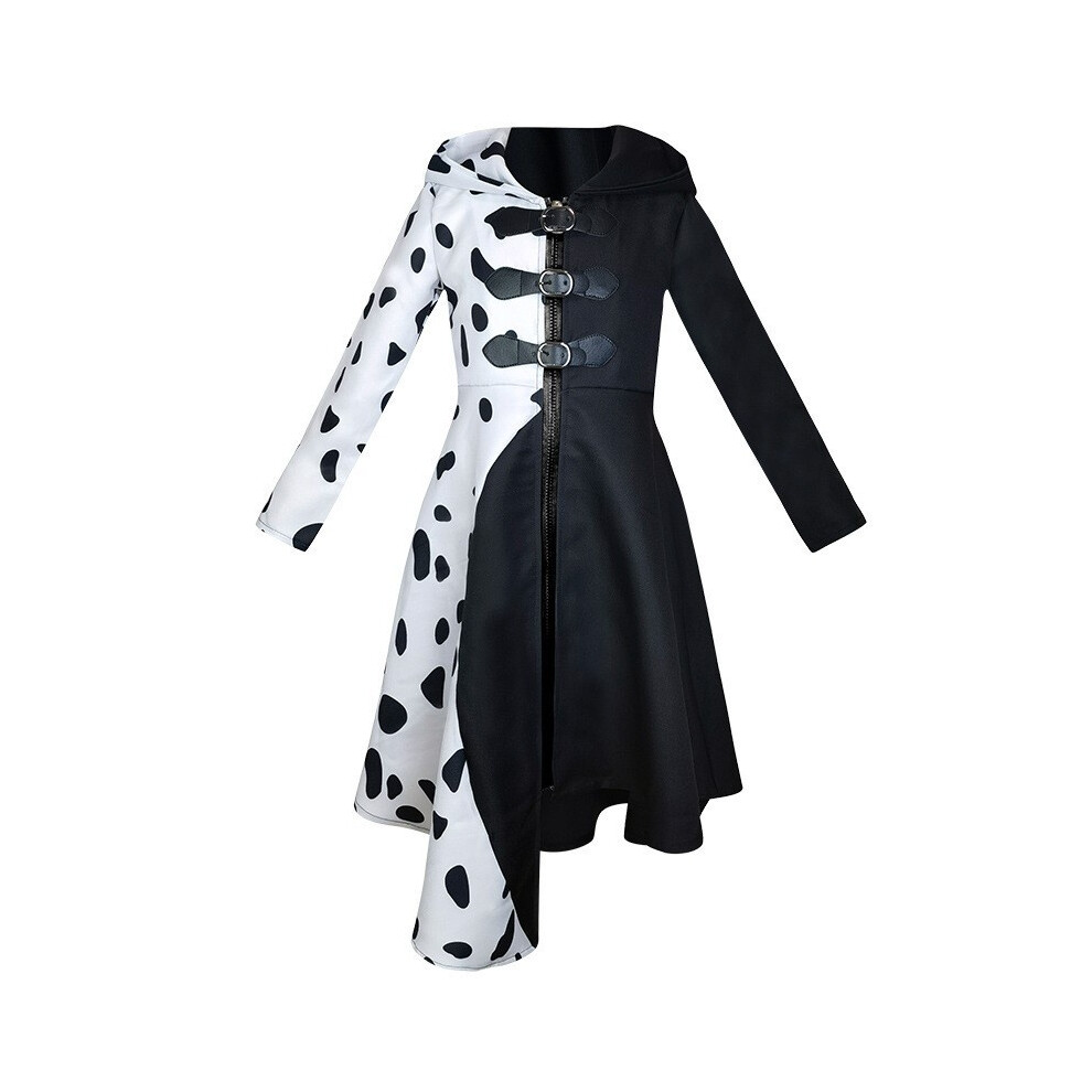 (Adult XS) Cruella Emma Deville Halloween Cosplay Dress Costume Party Event Kids Coat Adult