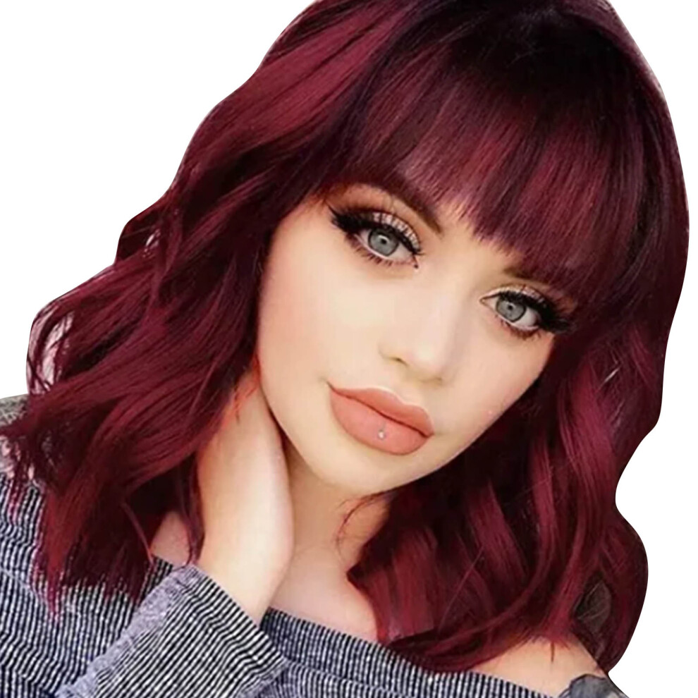 Wine Red Synthetic Wavy Bob Wig, Cruella Deville Costume Inspired Heat Resistant Hair, Natural And Soft Touch With Breathable Net Design