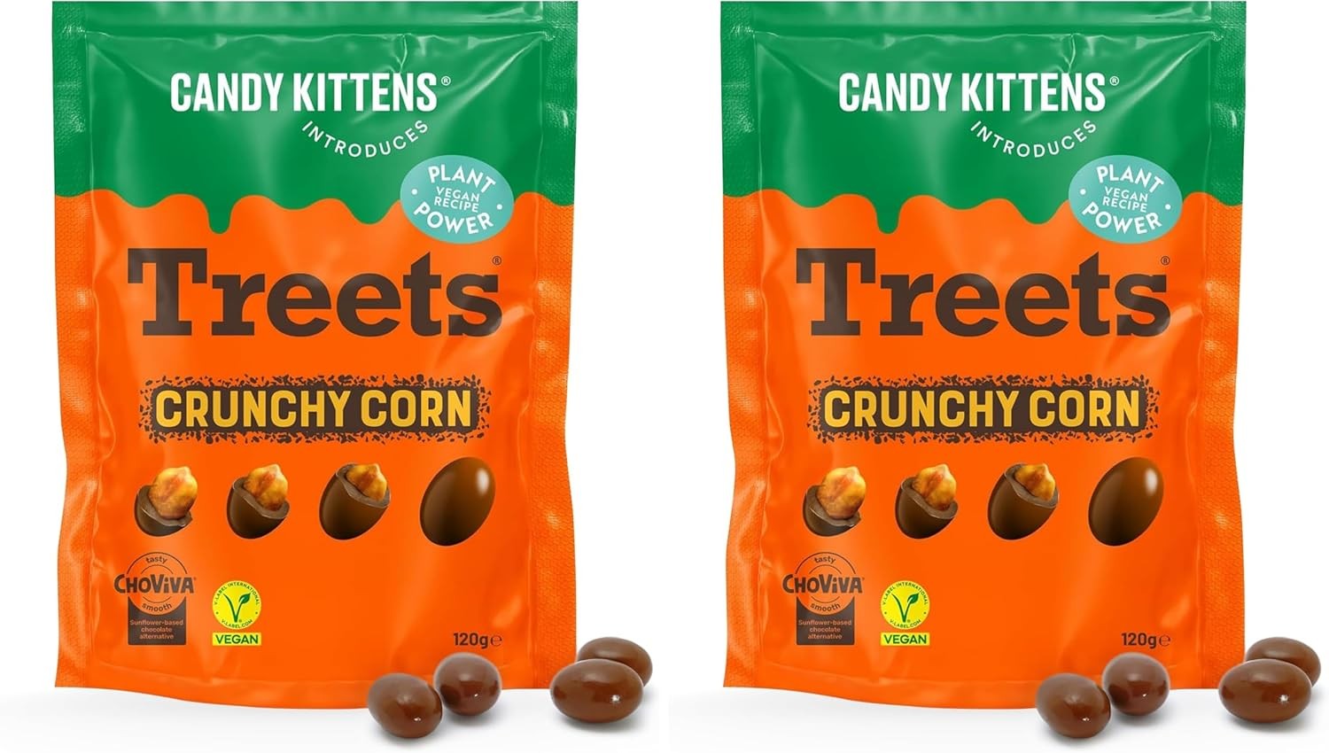 Candy Kittens Crunchy Treets Vegan Chocolate, Crunchy Corn (120g, Pack of 2) – Crunchy Plant-Based Snack, Chocolates Gift Box Alternative, Delicious Vegan Gifts Made with Cocoa-Free Choviva Shell