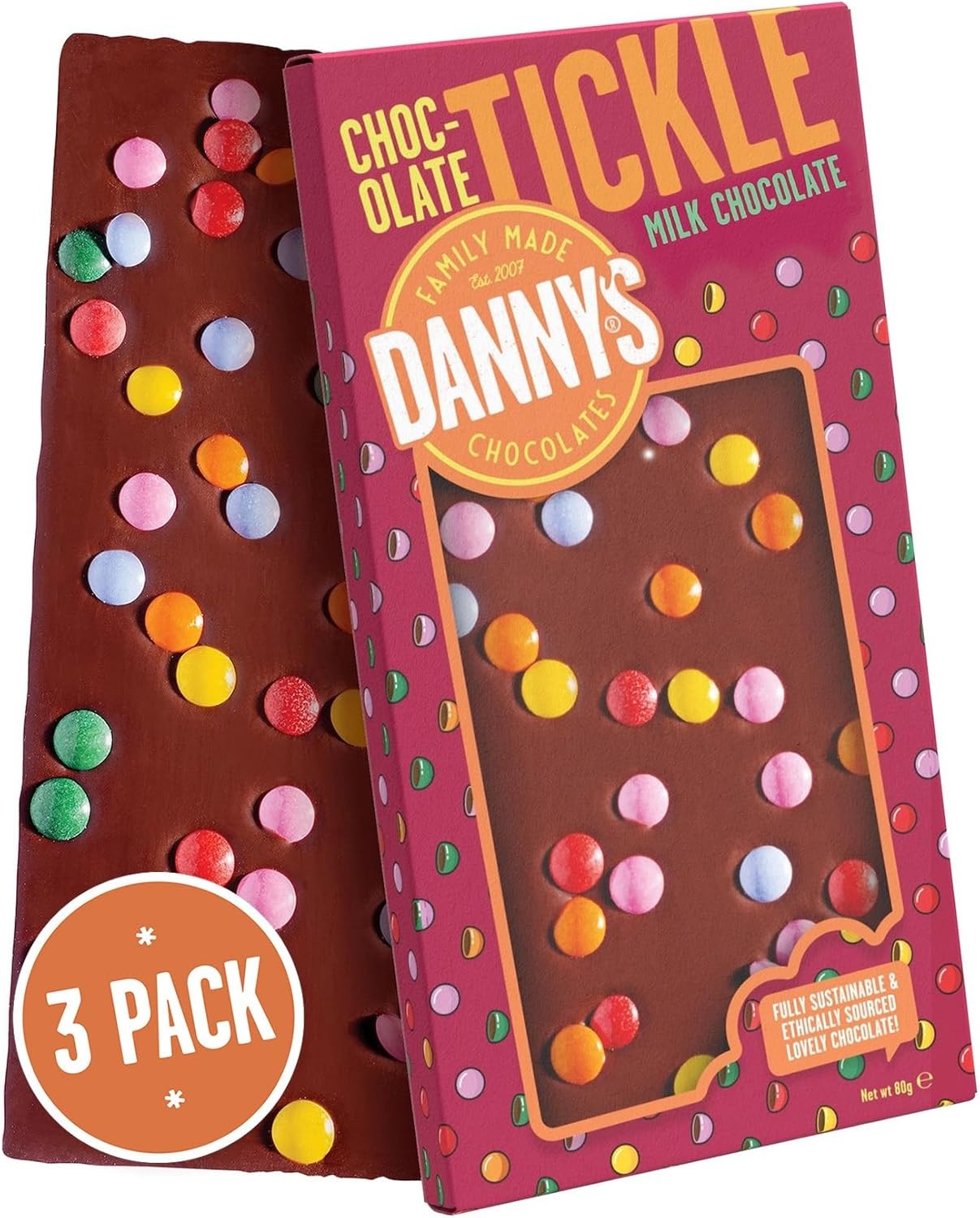 Danny's Chocolates Tickle Milk Chocolate Bar - 3 x 80g - With Crunchy Chocolate