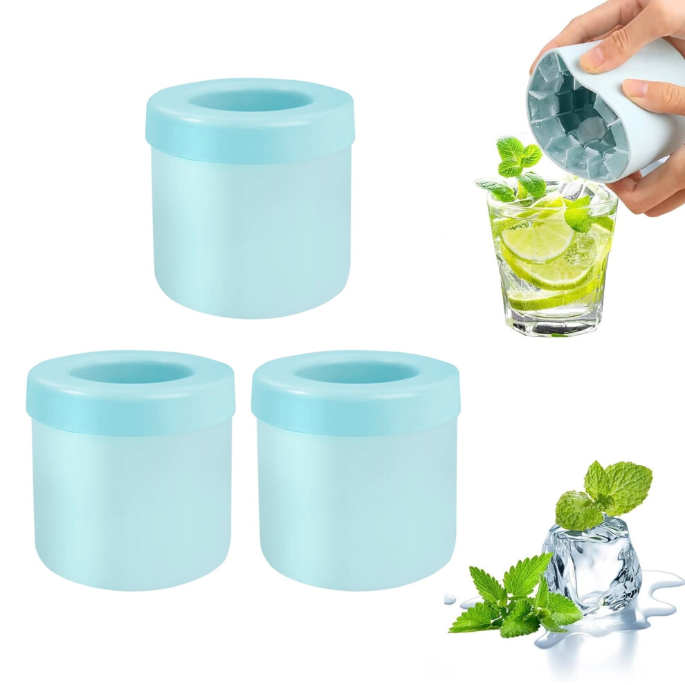 3PCS Silicone Ice Cube Trays, Cylinder Crushed Ice Maker Cup, Easy Release, Holds 60 Cubes, Portable Ice Bucket Mold (Blue), Compatible with Freezer