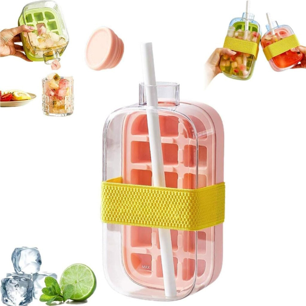 Ice Cube Bottle with Straw, 500ml Portable Silicone Ice Maker, Crushed Ice Water Bottle for Home Office Outdoor Use