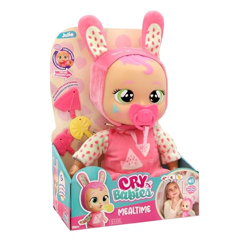 Cry Babies Mealtime Julie Interactive Newborn Doll With Light Up Tears Baby Sounds And Feeding Accessories Toy For Kids Age 3 Years and Up